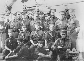 | Keywords: P01541.001.AWM.jpeg en AT SEA 1914-12-10 GROUP PORTRAIT OF OFFICERS OF THE 5TH AUSTRALIAN LIGHT HORSE REGIMENT 5ALH ABOARD SS PERSIC EN ROUTE TO EGYPT LEFT TO RIGHT BACK ROWS CAPTAIN CAPT EDWARD STEWART JAMES CAPT HENRY KING IRVING CHAPLAIN FRANCIS DE MOAG TUBMANN CAPT RICHARD STEWART BILLINGTON CAPT JOSEPH ESPIE DODS MAJOR MAJ WILLIAM CHATHAM CAPT THOMAS JOSEPH BRUNDRIT KIA ANZAC 1915-10 LIEUTENANT COLONEL LT COL DONALD CHARLES CAMERON MAJ WILLIAM LECKEY FERGUSON WRIGHT CAPT GEORGE PETER DONOVAN LIEUTENANT LT THOMAS BESWICK FARGHER CAPT HERBERT FRANCIS MCLAUGHLIN CAPT AUGUSTUS MAXWELL RYAN LT JOHN MATTHEW HANLY KIA ANZAC 1915-06 CAPT MALCOLM STUART KENNEDY; SECOND ROW CAPT PAUL DEGGE ROBINSON LT COL LACHLAN CHISHOLM WILSON LT COL HUBERT JENNINGS IMRIE HARRIS MAJ EDMUND EDWARD RIGHETTI CAPT EUSTACE ROYSTON BAUM PIKE; FRONT ROW CAPT JOHN GEORGE DONALD MCNEILL MAJ ROBERT HAROLD NIMMO http //cas awm gov au/item/P01541 001 Australian War Museum Anonymous photographer 1914-12-10 PD-Australia watermark Images from the Australian War Memorial Black and white photographs History of Australian rules football Australian Light Horse Royal Military College Duntroon |