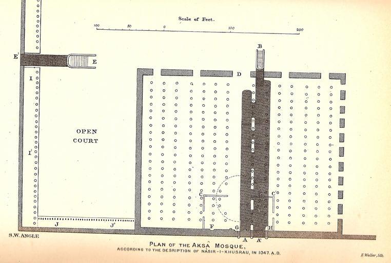 Keywords: P126a.Strange.jpg Plan of Al-Aqsa Mosque 1047 AD p 126 in Guy le Strange Palestine under the Moslems London 1890 PD-old Al-Aqsa Mosque in art Palestine under the Moslems