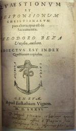 | Keywords: 1571 theodoredebeze P16-1225 titre 2 (6346681351).jpg P16-1225 titre 2 https //www flickr com/photos/mediathequeprotestante/6346681351/ P16-1225 titre 2 1576 https //www flickr com/people/66690468 N02 Medpro PD-old-100 Leoboudv 2016-11-29 Images from Médiathèque protestante de Strasbourg Théodore de Bèze 1576 books single pages etc Anchors in Christian art |