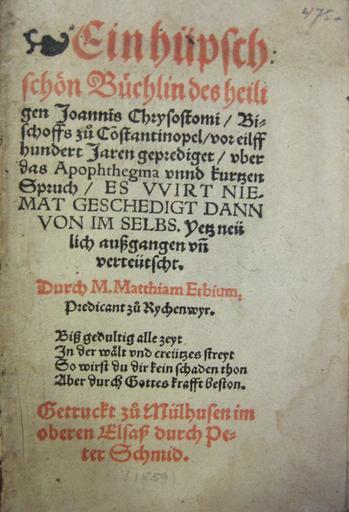 | Keywords: P16-1320 titre Medpro P16-1320 titre (6543831915).jpg P16-1320 titre https //www flickr com/photos/mediathequeprotestante/6543831915/ P16-1320 titre 1659 https //www flickr com/people/66690468 N02 Medpro PD-old-70 Amitie 10g 2016-11-29 Images from Médiathèque protestante de Strasbourg 1659 books from Germany 1659 books single pages Literary works by John Chrysostom |