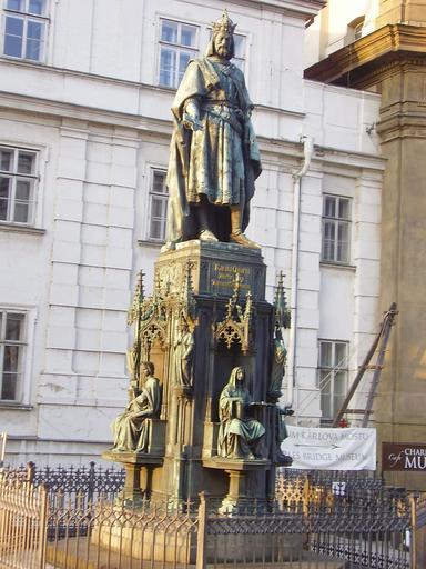 Keywords: P2100100.JPG Socha Karla IV na Křižovnickém náměstí v Praze postavená u příležitosti pětistého výročí založení Karlovy univerzity Sochy žen po obdvodu podstavce symbolizují jednotlivé fakulty teologickou lékařskou artistickou a právnickou Statue of Charles IV Holy Roman Emperor in Křižovnické Square A monument placed nearby Charles Bridge Prague in 1848 to commemorate the 500th anniversary of establishing the University of Prague by Charles IV women statues around the pedestal symbolize faculties of the university It is an iron statue by Arnost Hndel from Dresden Denkmal Kaiser Karls IV in Prag Socha Karla IV Kŕižovnícke nám Praha own Lady Rowena Statue of Charles IV at Křižovnické náměstí |
