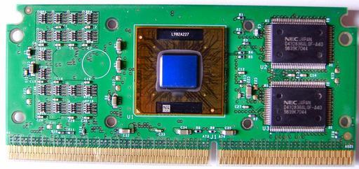 Keywords: P2 Deschutes open front.jpg en Pentium 2 Deschutes opened front view CPU and L2 cache de Pentium 2 Deschutes geöffnet Vorderseite CPU und L2 cache Own Mewtu Pentium II