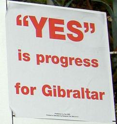 Keywords: P3 ref06.jpg Poster promoting the yes campaign in the 2006 referendum in Gibraltar Original photograph 2006-12-30 gibnews net PD Politics of Gibraltar Referendums Political posters of Europe History of Gibraltar