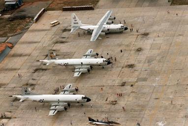 | Keywords: P-3s and KC-130F on display at NAS Pensacola 1986.JPEG U S Navy aircraft on display at the Naval Air Station Pensacola Florida USA on 10 May 1986 during the celebration of the 75th anniversary of naval aviation front to back <br> Lockheed P-3B-80-LO Orion BuNo 153417 from reserve Patrol Squadron VP-94 Crawfishers;<br> P-3C BuNo 160761 from VP-44 Golden Pelicans;<br> Lockheed KC-130F Hercules BuNo 148895 from reserve Marine Aerial Refueler Transport Squadron VMGR-234 Rangers This aircraft was written off after a crash landing after take-off from 29 Palms California USA on 11 February 2002 <br> Note the barely visible colourful Douglas TA-4J Skyhawk in the foreground http //www defenseimagery mil U S DefenseImagery photo VIRIN http //www defenseimagery mil/imagery html guid df75e95ed85851147f5f832ee07603969b81270e DN-SC-87-03208 1986-05-10 PH1 Blakemore USN PD-USGov-Military-Navy P-3B Orion P-3C Orion Patrol Squadron 44 United States Navy KC-130 Hercules United States Navy/Marine Corps Marine Aerial Refueler Transport Squadron 234 Naval Air Station Pensacola in the 1980s 75 years of US naval aviation |