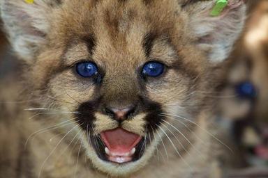 | Keywords: 5kd p35 animal mammal pet cat carnivore National Park Service researchers discovered two litters of mountain lion kittens in the eastern Santa Susana Mountains in June 2016. A total of five kittens, three females and two males, were eartagged and returned to their respective dens earlier this month. P-48 and P-49, both females, were born to P-35. P-38 is suspected to be the father. P-49 is the kitten in the foreground of this photo. National Park Service researchers discovered two litters of mountain lion kittens in the eastern Santa Susana Mountains in June 2016. A total of five kittens, three females and two males, were eartagged and returned to their respective dens earlier this month. P-48 and P-49, both females, were born to P-35. P-38 is suspected to be the father. P-49 is the kitten in the foreground of this photo. |