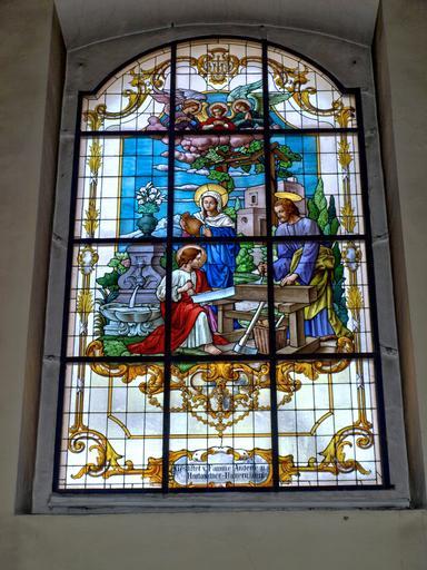 Keywords: pöchlarn mariae himmelfahrt church stained glass window interior decor symbolic