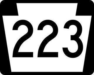 | Keywords: PA-223.svg 750 mm by 600 mm 30 in by 24 in Pennsylvania shield made to the specifications of the Manual on Uniform Traffic Control Devices MUTCD 2003 Edition sign M1-5 Uses the Roadgeek 2005 fonts United States law does not permit the copyrighting of typeface designs and the fonts are meant to be copies of a U S Government-produced work anyway Own 2006-11-29 TwinsMetsFan Public Domain Pennsylvania Route shields 223 223 number | ||||