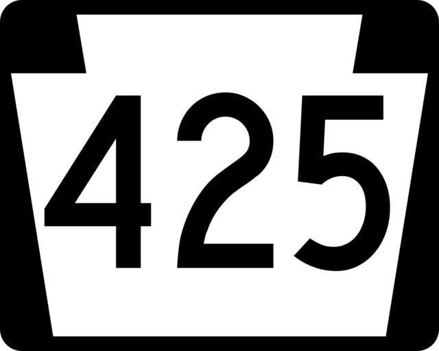 | Keywords: PA-425.svg 750 mm by 600 mm 30 in by 24 in Pennsylvania shield made to the specifications of the Manual on Uniform Traffic Control Devices MUTCD 2003 Edition sign M1-5 Uses the Roadgeek 2005 fonts United States law does not permit the copyrighting of typeface designs and the fonts are meant to be copies of a U S Government-produced work anyway Own 2006-11-17 TwinsMetsFan Public Domain Pennsylvania Route shields 425 | ||||
