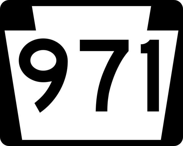 | Keywords: PA-971.svg 750 mm by 600 mm 30 in by 24 in Pennsylvania shield made to the specifications of the Manual on Uniform Traffic Control Devices MUTCD 2003 Edition sign M1-5 Uses the Roadgeek 2005 fonts United States law does not permit the copyrighting of typeface designs and the fonts are meant to be copies of a U S Government-produced work anyway Own 2006-11-27 TwinsMetsFan Public Domain Pennsylvania Route shields 971 | ||||