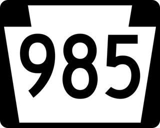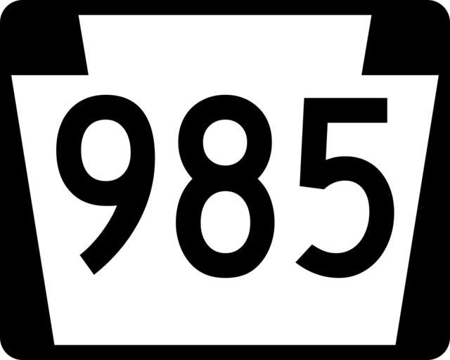 | Keywords: PA-985.svg 750 mm by 600 mm 30 in by 24 in Pennsylvania shield made to the specifications of the Manual on Uniform Traffic Control Devices MUTCD 2003 Edition sign M1-5 Uses the Roadgeek 2005 fonts United States law does not permit the copyrighting of typeface designs and the fonts are meant to be copies of a U S Government-produced work anyway Own 2006-11-12 TwinsMetsFan Public Domain Pennsylvania Route shields 985 985 number | ||||