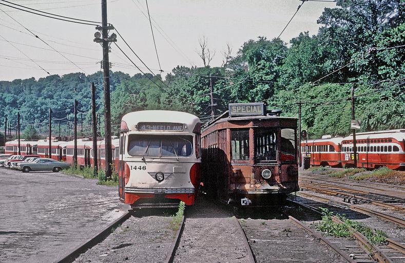 | Keywords: outdoor railroad vehicle train road A Roger Puta Photograph A Roger Puta Photograph <b>A Roger Puta Photograph</b> PAAC PCC 1446 a -43 NEEDL AVE car (abandoned line) in storage next to a McQuire - Cummins car used in MoW work. 1200 series PCCs stored behind 1446 at South Hills Jct., Pittsburgh on June 26, 1965 (26765179695).jpg en <b>A Roger Puta Photograph</b> 2016-05-01 22 15 25 https //www flickr com/people/129679309 N05 railfan 44 https //www flickr com/photos/129679309 N05/26765179695/ User Fæ/Flickr API Puta's Rail Mass Transit Photographs Trains and Trolleys Trams/Streetcars I Love Trains PCC tram/streetcar/trolley Pittsburgh Transit Your Best Railroad Photos Your Favorite Railroad Shot Streetcars and Light Rail in North America Trains and Railroads of Pennsylvania Pittsburgh Rails North American Rail Transit Mel Finzer RogerPuta Photographs by Roger Puta Photos uploaded from Flickr by Fæ using a script Streetcars in Pittsburgh in the 1960s |