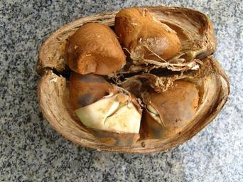 Keywords: Pachirasementes.JPG en pachira aquatica fruit nuts from sao paulo brazil Own Mauroguanandi 2008-07-25 Pachira aquatica Seeds