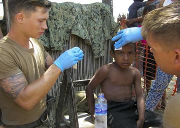 | Keywords: Pacific Deployment 2015 150918-N-DC245-008.jpg en 150918-N-DC245-008 LIQUICA Timor-Leste Sep 18 2015 Naval Mobile Construction Battalion NMCB 3 s Timor-Leste Civic Construction Action Detail CCAD Construction Electrician 3rd Class Jayke Boughton and SteelWorker 2nd class Spenser Hawks help cleanup a young boy who was injured during a soccer game being played near the Tibar Primary School U S Navy photo by Builder 3rd Class William Coney IV/Released <br>Unit Naval Mobile Construction Battalion 3 2015-09-18 William Coney https //www dvidshub net/image/2198338/pacific-deployment-2015 150918-N-DC245-008 2015-09-28 09 53 LIQUICA TL PD-USGov-Military-Navy Naval Mobile Construction Battalion 3 Images from DoD uploaded by FĂŚ |