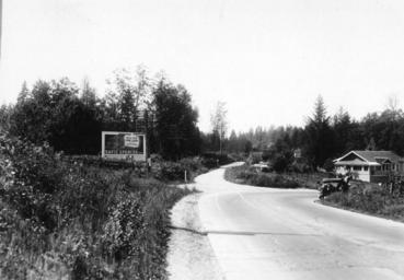 | Keywords: blackandwhite monochrome outdoor snow black and white Pacific Highway at bend at Clayton (a.k.a. Fry's Corner) in Surrey, BC. View looking east towards the start of Yale Road. The Pacific Highway continues south to the U.S. border. 1931 photograph. [City of Vancouver Archives] The Pacific Highway opened in 1913 as an automobile route from the Fraser River bridge at New Westminster to the U.S. border through Cloverdale. It was paved in 1923. The highway in the foreground and Yale Road (which dates back to 1874) will soon become the Fraser Highway and the highway leading south will become today's 176th Street. Pacific Highway at bend at Clayton (a.k.a. Fry's Corner) in Surrey, BC. View looking east towards the start of Yale Road. The Pacific Highway continues south to the U.S. border. 1931 photograph. [City of Vancouver Archives] The Pacific Highway opened in 1913 as an automobile route from the Fraser River bridge at New Westminster to the U.S. border through Cloverdale. It was paved in 1923. The highway in the foreground and Yale Road (which dates back to 1874) will soon become the Fraser Highway and the highway leading south will become today's 176th Street. |