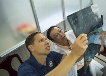 | Keywords: Pacific Partnership 160722-N-BB534-221.jpg en 160722-N-BB534-221 DA NANG Vietnam July 22 2016 Lt Cmdr Paul Porensky left a neurosurgeon assigned to Pacific Partnership 2016 and Lê Quang Chí Cüòng vice chief of Da Nang General Hospital review a patient's X-rays during a cooperative health engagement CHE During the CHE Porensky worked together with local surgeons to diagnose patients and perform surgeries Pacific Partnership is in Da Nang where hospital ship USNS Mercy T-AH 19 is joined by JS Shimokita LST-4002 and Vietnam People's Navy ship Khánh Hóa Partner nations are working work side-by-side with local organizations to conduct cooperative health engagements community relation events and subject matter expert exchanges to better prepare for natural disaster or crisis U S Navy photo by Mass Communication Specialist 1st Class Elizabeth Merriam/Released <br>Unit Defense Imagery Management Operations Center 2016-07-22 Petty Officer 1st Class Elizabeth Merriam https //www dvidshub net/image/2752934/pacific-partnership 160722-N-BB534-221 2016-07-28 13 37 DA NANG VN PD-USGov-Military-Navy USNS Mercy T-AH-19 Pacific Partnership 2016 Images from DoD uploaded by Fæ |