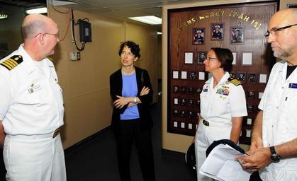 | Keywords: Pacific Partnership 2010 100718-N-6410J-161.jpg en USNS MERCY At Sea July 18 2010 - Consul General of the United States Kristen F Bauer receives a tour of the Military Sealift Command hospital ship USNS Mercy T-AH 19 during her visit aboard the ship Pacific Partnership 2010 is the fifth in a series of annual U S Pacific Fleet endeavors conducted in Indonesia as a disaster relief exercise aimed at strengthening regional relationships and partner nations in Southeast Asia and Oceania U S Navy photo by Mass Communication Specialist 3rd Class Matthew Jackson 2010-07-17 22 51 13 http //www c7f navy mil/imagery/galleries/monthly/2010/07-july/index41 htm August 2010 Images Mass Communication Specialist 3rd Class Matthew Jackson U S Navy other versions PD-USGov-Military-Navy 100718-N-6410J-161 Navy Uploaded with UploadWizard Jeffery W Paulson Kristen F Bauer Lisa M Franchetti Pacific Partnership 2010 |