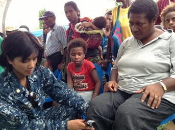 | Keywords: Pacific Partnership 2013 130615-N-ZZ999-002.jpg 3 34 46 0 S 143 38 13 0 E alt 27 000404_source exif_heading 315 432624 en Lt Cmdr Regina Chinsio tests the reflexes of a patient during a Pacific Partnership 2013 health fair Working at the invitation of each host nation Pacific Partnership is joined by partner nations that include Australia Canada Colombia France Japan Malaysia Singapore South Korea and New Zealand to strengthen disaster response preparedness around the Indo-Asia-Pacific region 2013-06-15 U S Navy photo by Lt j g Paul Newell/Released https //www dvidshub net/image/963389 130615-N-ZZ999-002 2013-06-28 20 22 WEWAK PG PD-USGov-Military-Navy Pacific Partnership 2013 Images from DoD uploaded by Fæ |