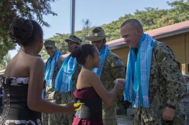 | Keywords: Pacific Partnership 2014 140617-N-NW827-079.jpg en A Timorese student thanks U S Navy Capt Rodney Moore right the commander of the 30th Naval Construction Regiment during a ribbon-cutting ceremony in support of Pacific Partnership 2014 at the Comoro Elementary School in Dili East Timor June 17 2014 Pacific Partnership is an annual deployment of forces designed to strengthen maritime and humanitarian partnerships during disaster relief operations while providing humanitarian medical dental and engineering assistance to nations of the Pacific U S Navy photo by Mass Communication Specialist 1st Class Stephen Oleksiak/Released 2014-06-17 Petty Officer 1st Class Stephen Oleksiak https //www dvidshub net/image/1417426 140617-N-NW827-079 2014-06-25 00 01 DILI TL PD-USGov-Military-Navy Pacific Partnership 2014 Images from DoD uploaded by Fæ |