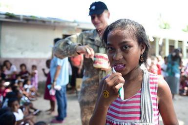 | Keywords: Pacific Partnership holds dental outreach program at primary school 150605-N-HY254-030.jpg en 150608-N-HY254-030 TARAWA Kiribati June 8 2015 A student from the Dai Nippon Primary School in Betio Kiribati brushes her teeth at dental hygiene class during Pacific Partnership 2015 The program was offered by host nation and military dental providers from Australia New Zealand and the U S and is one of the many professional knowledge exchanges that are taking place during this year ™s Pacific Partnership mission Now in its 10th iteration Pacific Partnership is the largest annual multilateral humanitarian assistance and disaster relief preparedness mission conducted in the Indo-Asia-Pacific Region While training for crisis conditions Pacific Partnership missions have provided medical care to approximately 270 000 patients and veterinary services to more than 38 000 animals Additionally Pacific Partnership has provided critical infrastructure development to host nations through the completion of more than 180 engineering projects U S Navy photo by Chief Mass Communication Specialist Jonathan R Kulp/Released 2015-06-08 Chief Petty Officer Jonathan Kulp https //www dvidshub net/image/1981295 150605-N-HY254-030 2015-06-08 05 10 TARAWA KI PD-USGov-Military-Navy Pacific Partnership 2015 Images from DoD uploaded by Fæ |