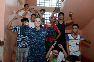 | Keywords: Pacific Surface Action Group (PAC SAG) 2016 160811-N-YU572-299.jpg en 160811-N-YU572-299 SUBIC BAY The Republic of the Philippines Aug 11 2016 Damage Controlman 2nd Class Ryan Reffitt assigned to the guided-missile destroyer USS Momsen DDG 92 poses with students at the Olongapo City Social Development for Boys during a community service project held in support of a regularly scheduled port call The guided-missile destroyers USS Spruance DDG 111 USS Decatur DDG 73- and Momsen are deployed in support of maritime security and stability in the Indo-Asia-Pacific as part of a U S 3rd Fleet Pacific Surface Action Group PAC SAG under Commander Destroyer Squadron CDS 31 U S Navy photo by Cryptologic Technician 2nd Class Donald Oates/Released <br>Unit Navy Media Content Services 2016-08-11 Petty Officer 1st Class Jay Pugh https //www dvidshub net/image/2794692/pacific-surface-action-group-pac-sag-2016 160811-N-YU572-299 2016-08-16 00 14 SUBIC BAY Th PD-USGov-Military-Navy USS Momsen DDG-92 USS Spruance DDG-111 Images from DoD uploaded by FĂŚ |