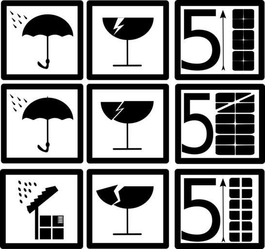 Keywords: package pictogram fragile packaging packing symbols signs water glass rain shipping shipment