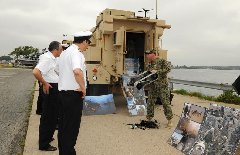 | Keywords: PackBot transportable robotic system 120808-N-ZQ794-096.jpg en Lt Ryan Blake attached to Explosive Ordnance Disposal Mobile Unit EODMU 2 displays a PackBot transportable robotic system to a members of the Chilean Naval War College during a tour of Navy Expeditionary Combat Command NECC at Joint Expeditionary Base Little Creek-Fort Story Aug 8 The purpose of the visit was to familiarize the tour participants with NECC capabilities and provide first-hand experience with expeditionary sailors and their equipment 2012-08-08 Seaman Kay Savarese https //www dvidshub net/image/642348 120808-N-ZQ794-096 2012-08-09 16 02 VIRGINIA BEACH VA US PD-USGov-Military-Navy Joint Expeditionary Base Little Creek-Fort Story PackBot Images from DoD uploaded by Fæ |