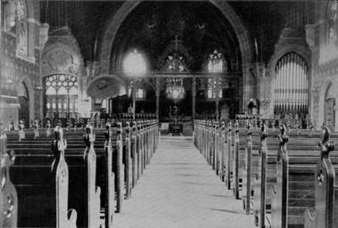 | Keywords: Packer Memorial Church interior view 1896.jpg Interior view of Packer Memorial Church of Lehigh University which was erected by Mrs Mary Packer Cummings in memory of her family This magnificent Gothic temple is constructed of sandstone and in elegance of finish as well as in massiveness is the crown of the collection of handsome buildings in the University park The total length of the church is 168 feet inside and the transepts measure 84 feet across The front is adorned with a bold spire 180 feet high and the carved stone work of the portal together with the projecting baptistry give a rich variety to the lines It will seat 900 persons comfortably and is was used not only for divine service but also for the Commencement exercises The interior is handsomely decorated and the series of stained glass windows illustrate a large number of Scripture incidents The chancel contains a fine organ Edmund M Hyde The Lehigh University a Historical Sketch 1896 http //www lehigh edu/library/speccoll/hyde pdf The Lehigh University a Historical Sketch by Edmund M Hyde 1896 < 1896 author PD-old-100 Packer Memorial Church Black and white photographs of buildings |