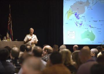 | Keywords: PACOM commander speaks at the 2014 Pacific Operational Science and Technology conference 140826-N-DX698-063.jpg en Adm Samuel J Locklear III commander of U S Pacific Command speaks at the 2014 Pacific Operational Science and Technology POST conference and exhibit at Hilton Hawaiian Village Waikiki Hawaii POST is co-sponsored by U S Pacific Command and the National Defense Industrial Association to bring science technology and security experts together to collaborate share ideas and discuss security and safety in the Asia-Pacific region U S Navy photo by Mass Communication Specialist 1st Class Jay M Chu/Released 2014-08-26 Petty Officer 1st Class Jay Chu https //www dvidshub net/image/1527525 140826-N-DX698-063 2014-08-28 16 38 WAIKIKI HI US PD-USGov-Military-Navy Samuel J Locklear Images from DoD uploaded by Fæ |
