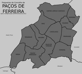| Keywords: Paços de Ferreira freguesias 2013.svg pt Freguesias do concelho de Paços de Ferreira Fontes Diário da República Reorganização administrativa do território das freguesias Lei n º 11-A/2013 de 28 de janeiro Direcção-Geral do Território Carta Administrativa Oficial de Portugal CAOP versão 2013 Continente http //www dgterritorio pt/ficheiros/cadastro/caop/caop_download/caop_2013_0/caop2013cont_zip_2 en Civil parishes in the municipality of Paços de Ferreira Portugal Sources Diário da República Administrative reorganization of the civil parishes' territory Law n 11-A/2013 from 28th January Direcção-Geral do Território Official Administrative Chart of Portugal CAOP version 2013 Mainland http //www dgterritorio pt/ficheiros/cadastro/caop/caop_download/caop_2013_0/caop2013cont_zip_2 2014-04-12 19 12 43 own Gazilion cc-zero Uploaded with UploadWizard Paços de Ferreira SVG maps of freguesias in Portugal |