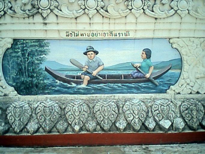 | Keywords: Paddle.JPG มืà¸à¹„ม่พายà¸à¸¢à¹ˆà¸²à¹ à¸à¸²à¸•ีนราน้ำ มืà¸à¹„ม่พายà¸à¸¢à¹ˆà¸²à¹ à¸à¸²à¹ ท้าราน้ำ -- Illustrated Proverb Don't dangle foot when not paddling Phra That Phanom chedi Amphoe That Phanom Nakhon Phanom Province northeastern Thailand 2004-06-21 Pawyi Lee Public domain Reliefs in Thailand Wat Phra Tat Phanom Rowboats in art Human feet in art Proverbs in art Thai proverbs | ||||