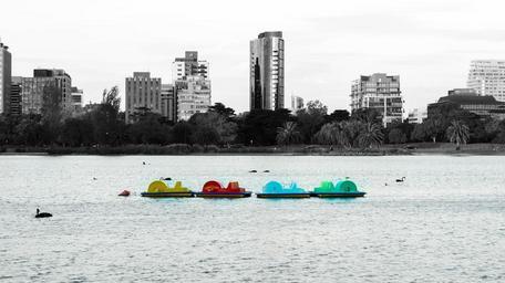 Keywords: paddle boats lake paddle boat paddle boat city black and white albert park melbourne australia water colour pop colour yellow red color colours blue green