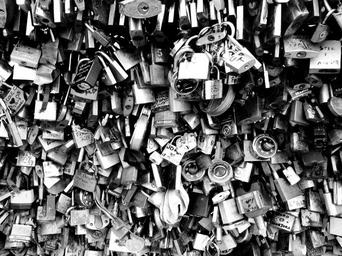 Keywords: padlock bridge of lovers paris pont des arts love bridge message black and white happiness