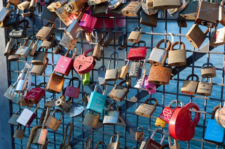 Keywords: padlocks bridge love couples railing in love padlock boyfriends promises