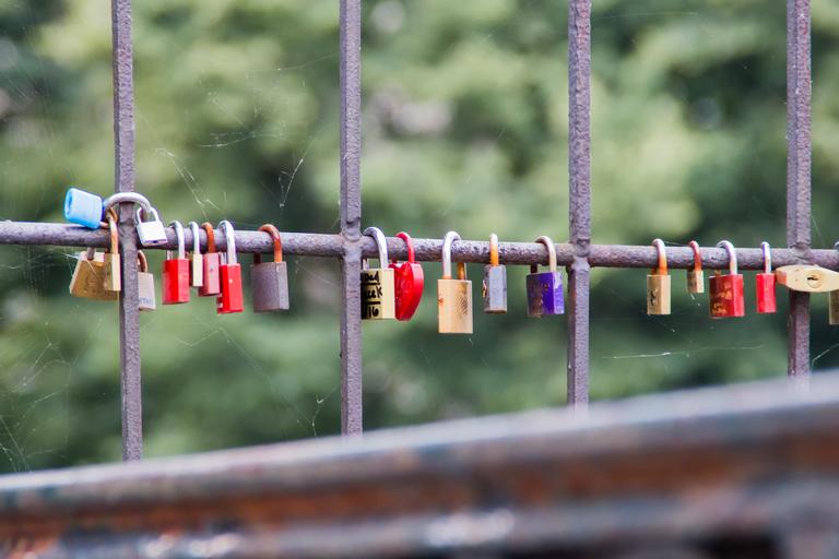 Keywords: padlocks padlock of lovers bridge metal bridge lovers romantic rust heart old bridge