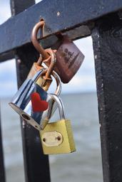 Keywords: padlocks padlock of lovers the pier symbols eternal love bridge lovers love heart