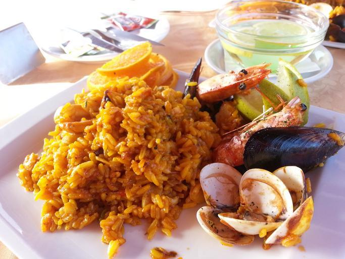 Keywords: paella fish seafood spanish spain canary islands summer shrimp mat lemon colors rice mussels dinner eating out restaurant plate