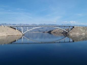 Keywords: pager bridge croatia dalmatia island of pag sea water blue mirroring