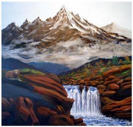 Keywords: paint color mountains art painting waterfall acrylic paint landscape fantasy