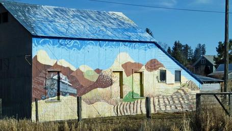 Keywords: painted barn colorful building wall agriculture farm farming fence country side