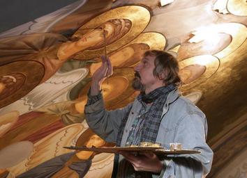 Keywords: painter artist painting ceiling master brush paint color oil bright colorful art surface icon creativity inspiration creator temple orthodoxy religion traditional church gold christianity architecture