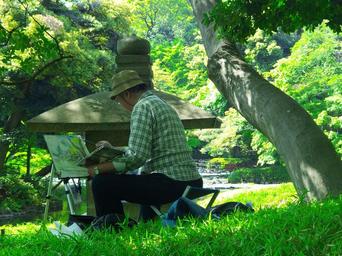 Keywords: painter garden tokyo outdoors park landscape painting art work process
