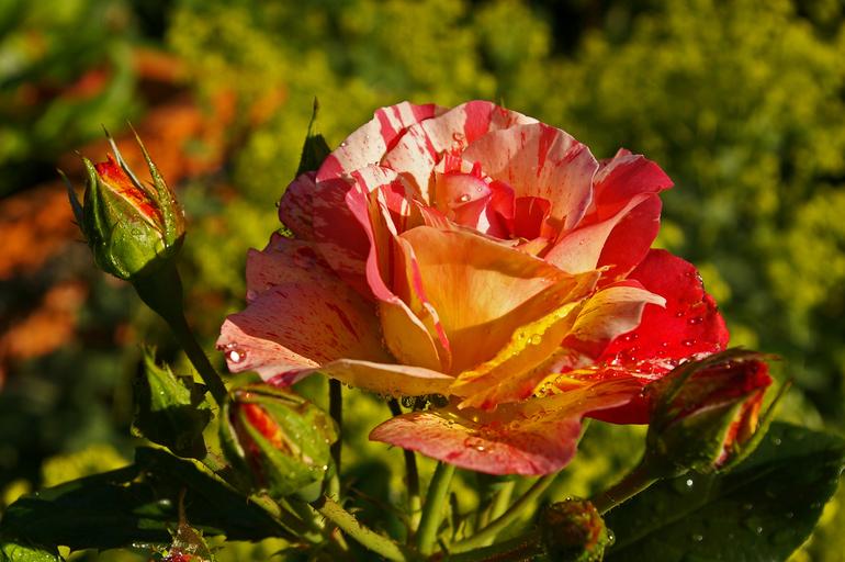 | Keywords: painter rose bicolor rose blossom bloom yellow red rose filigree bed garden bi color color change summer floribunda colorful fragrance color bloom beautiful shrub rose rose bloom flora flower plant nature beauty romantic rose family drop of water rain |