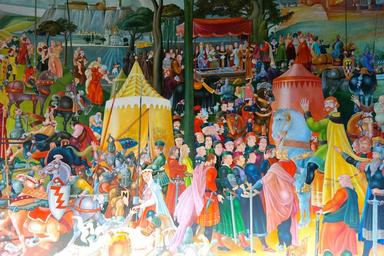 | Keywords: painting human image colorful color king konrad iii die bamberg burial place bamberg cathedral section canvas dynasty house of hohenstaufen artists sandra round image round image chapter hall monastery of lorch ride horses hans kloss shield lance knight |