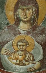 Keywords: Paintings in the Church of the Theotokos Peribleptos of Ohrid 073.jpg mk Ф ески во Ц квата Св Бого одица Пе ивлепта во Ох ид en Frescos in the Church of the Theotokos Peribleptos Оhrid Macedonia ru Ф есок це кви Пе ивлепты Ох идской акедония http //sankire narod ru/PerOhrid html Пе ивлепта Ох идская century 14 AD Painters Michael and Ephtichius PD-Macedonia PD-Art Paintings in the Church of the Theotokos Peribleptos