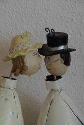 Keywords: pair marry wedding man and woman together love bride and groom man woman lovers togetherness for two two fig couple metal kiss affection relationship loyalty luck feelings