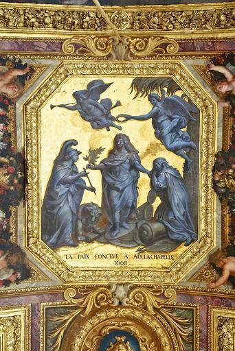 | Keywords: Paix conclue à Aix la Chapelle 1668 Ceiling Hall of mirrors Versailles.jpg fr Un détail du plafond de la Galerie des Glaces au Château de Versailles figurant en grisaille sur fond or la Paix d'Aix-la-Chapelle en 1668 par Creator Charles Le Brun 2011-05-25 own Jebulon 48 48 17 2 N 2 7 13 6 E Wikimedia takes the Château de Versailles cc-zero Uploaded with UploadWizard Treaty of Aix-la-Chapelle 1668 Louis XIV of France Charles Le Brun Hall of Mirrors Palace of Versailles Grisaille Allegory of victory Ceilings in the Palace of Versailles Wikimedia takes the Château de Versailles May 25 2011 Quality images by Jebulon Quality images supported by Wikimedia France Quality images of Versailles Photographs taken on 2011-05-25 Versailles Taken with Sony DSLR-A550 QualityImage |