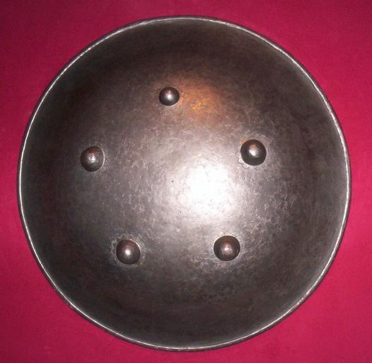 Keywords: Pajzs ötrozettás.jpg 16 vagy 17 századi kerek pajzs d 620 mm ; h 120 mm ; m 3 7 kg A CsÃki Székely Múzeum tulajdona “ photo taken by uploader User Csanády in 2006 2006-08-23 own assumed Csanády Round shields Dhal