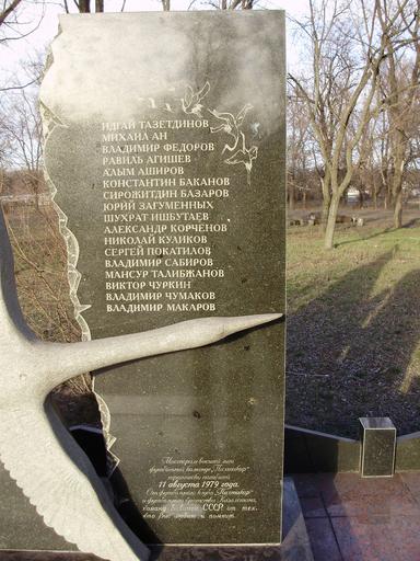| Keywords: Pakhtakor monument (3).JPG ru Вид мемо иала футбольной команде «Пахтако » погибшей в авиакатаст офе 11 августа 1979 года Улица Шевченко пгт Ку иловка Пет иковский айон Днеп опет овская область en View of the monument to footbal team «Pakhtakor» perished in mid-air collision on 11 August 1979 Shevchenko street Urban-type settlement Kurilovka Petrykivka Raion Dnipropetrovsk Oblast 2014-03-17 own Vasyatka1 48 572722 34 642011 Pakhtakor monument | ||||