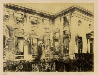 | Keywords: Palace of the Legion of Honor- Side View WDL1283.png Artwork ru Б аквейе Б уно 1823 1875 гг fr Braquehais Bruno 1823-1875 en Braquehais Bruno 1823-1875 zh 布鲁诺·布拉奇海 ,1823-1875 年 pt Braquehais Bruno 1823-1875 ar براكهيه برونو، 1823-1875 es Braquehais Bruno 1823-1875 ru Дво ец Почетного легиона вид сбоку fr Palais de la Légion d honneur vue latérale en Palace of the Legion of Honor Side View zh 荣军院:侧景 pt Palácio da Legião da Honra visão lateral ar قصر فيلق الشرف منظر جانبي ru П ичиной ф анко-п усской войны стал ост нап яженности в отношениях между Ф анцией и П уссией в 1860-х гг Ф анция п и импе ато е аполеоне III была полна ешимости п ове ить астущую силу П уссии и отомстить за то что она ассмат ивала как яд дипломатических унижений П уссия п и канцле е Отто фон Бисма ке считала что война ге манских госуда ств п отив Ф анции под уководством П уссии станет ешающим шагом к созданию единой Ге манской импе ии Конфликт начался 19 июля 1870 г когда Ф анция объявила войну Ф анцузская а мия оказалась ужасно неподготовленной и поте пела сок ушительное по ажение в битве п и Седане отк ыв до огу на Па иж К 19 сентяб я немцкие войска полностью ок ужили го од и начали осаду кото ая п одлилась более четы ех месяцев От езанные от поставок п одовольствия из сельской местности па ижане пытались выжить питаясь собаками кошками и даже животными из па ижского зоопа ка Де евья на Елисейских полях и в па ках были вы ублены и использованы в качестве топлива 5 янва я немецкие войска начали бомба ди овку го ода кото ая п одолжалась по несколько часов каждую ночь в течение 23 суток а ок естности Па ижа было сб ошено около 12 000 сна ядов кото ые убили около 400 человек Па иж сдался 28 янва я в сущности положив конец войне За по ажением ф анцузов последовало на одное восстание и установление в а те 1871г Па ижской коммуны еволюционного п авительства сфо ми ованного в соответствии с ана хистскими и социалистическими п инципами Коммуна была жестоко подавлена в мае 1871 г ф анцузскими войсками п авительства Адольфа Тье а Во в емя неп одолжительного конт оля над Па ижем коммуна ы аз ушали импе ато скую колонну на Вандомской площади Подавление коммуны п ивело к дальнейшим значительным аз ушениям в го оде когда коммуна ы подожгли дво ец Тюиль и Лув и д угие здания К оме того многие здания пост адали или были аз ушены во в емя отчаянной пе ест елки между коммуна ами и конт еволюционными силами Siege de Paris 1870 1871 Осада Па ижа 1870 1871 гг п едставляет собой альбом из 110 фотог афий сделанных Огюстом Б уно Б аквейе 1823 1875 гг ф анцузским фотог афом и п ог ессивным фотожу налистом документи овавшим осаду и последствия бомба ди овок а также аз ушения п оизошедшие во в емя Па ижской коммуны <br>Замки и дво цы; Ф анко-п усская война 1870 1871 гг ; Дво ец де Сальм Па иж Ф анция ; Память ми а; Уще б нанесенный войной fr La guerre franco-allemande fut provoquée par l escalade des tensions entre la France et la Prusse dans les années 1860 La France sous l empereur Napoléon III était déterminée à contenir la croissance de la puissance prussienne et à venger ce qui était considéré comme une série d humiliations diplomatiques La Prusse sous le chancelier Otto von Bismarck considérait qu une guerre dirigée par la Prusse et menée par les États allemands contre la France serait un acte décisif menant à la création d un empire allemand unifié Le conflit débuta le 19 juillet 1870 jour où la France déclara la guerre L armée française s avéra terriblement mal préparée et subit une défaite désastreuse lors de la bataille de Sedan laissant la voie libre vers Paris Le 19 septembre les Allemands encerclèrent complètement la ville et commencèrent un siège qui allait durer plus de quatre mois Coupés du ravitaillement provenant de la campagne les Parisiens survécurent en mangeant les chiens les chats et même la plupart des animaux du zoo de Paris Les arbres des Champs-Élysées et des parcs furent coupés et brûlés pour servir de combustible Le 5 janvier les armées allemandes entreprirent le bombardement d