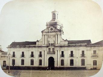 | Keywords: Palacio de la Real Audiencia de Santiago.jpg es El Palacio de la Real Audiencia y Cajas Reales Palacio de la Real Audiencia o Palacio de las Cajas o Palacio de la Independencia es un edificio ubicado en la vereda centro-norte de la Plaza de Armas de Santiago de Chile que data de 1808 y que alberga desde 1982 la sede del Museo Histórico Nacional de Chile http //www archivovisual cl/la-poste Eugène Maunoury 1860-1870 PD-old-100 Plaza de Armas de Santiago de Chile Palacio de la Real Audiencia de Santiago |